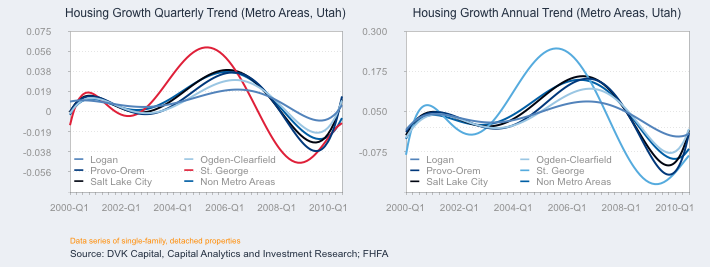 St. George metro area is still lagging. The HPI growth trend is forecasted to stall in the coming quarters.